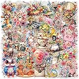 55Pcs Vintage Watercolor Floral Stickers,PET Transparent Flo...